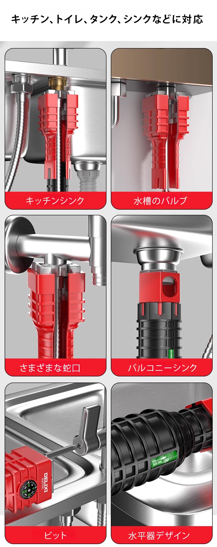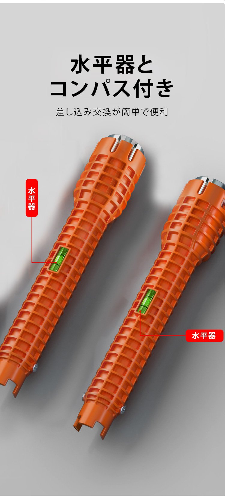 工具箱に収納された多規格対応水栓レンチ